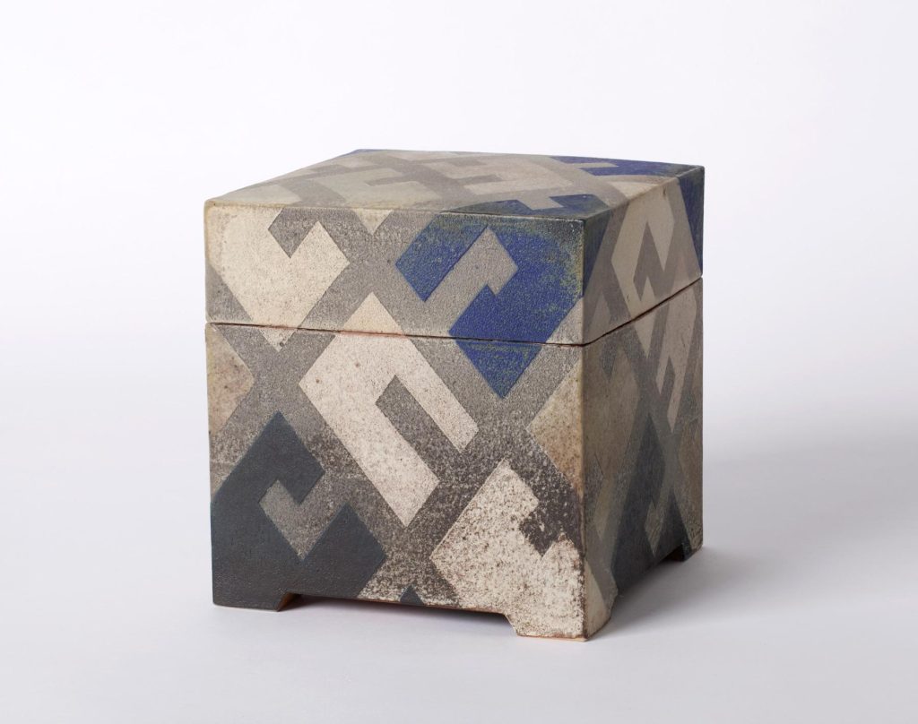 | Material / technique | Stoneware, slab-built, engobed and glazed (feldspar glaze) |