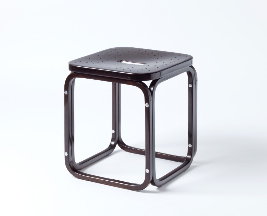 | Material / technique | Wood (beech), partly curved, partly veneered, stained brown; aluminium |