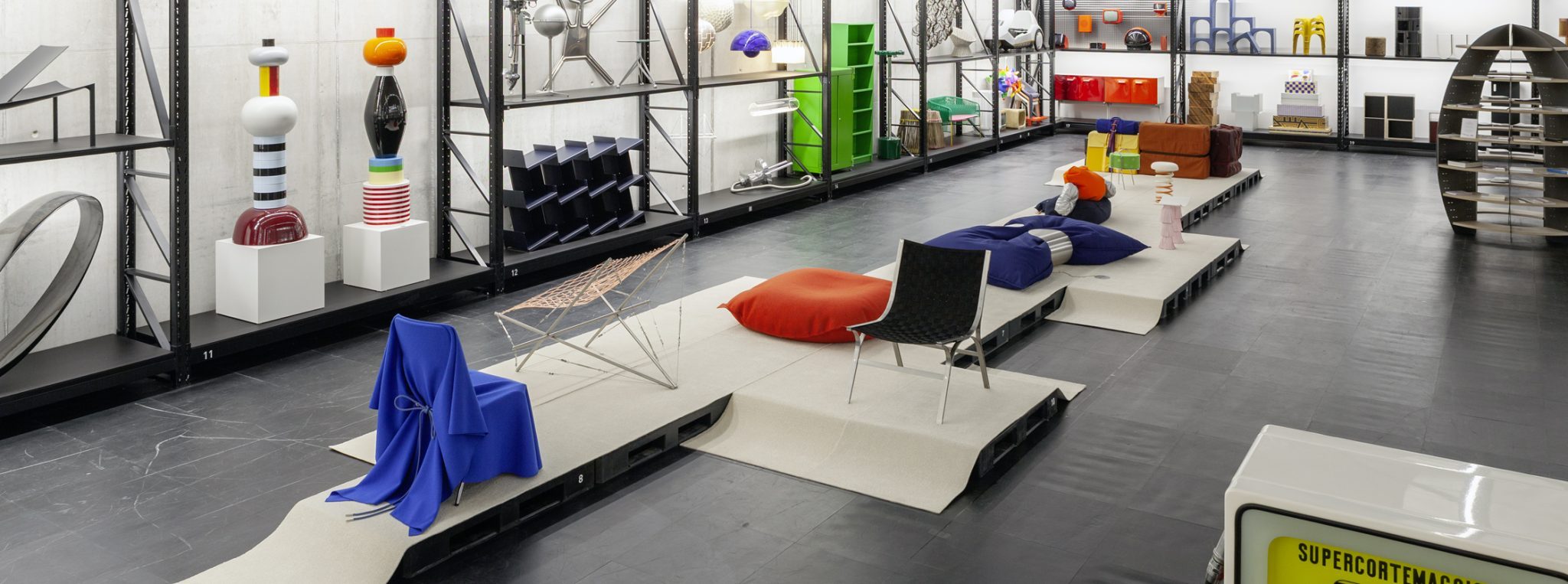 The exhibition shows seating furniture made from fabric.