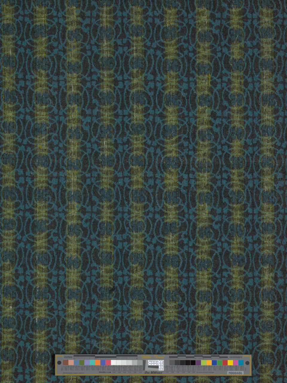| Material / Technik | Webgobelin; Wolle, Baumwolle, Seide; Querrips; handgewebt. 3 Webkanten, 1 geschnittene unversäuberte Kante |