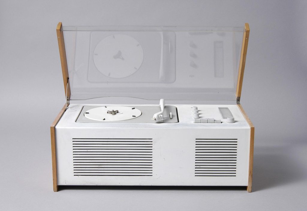 Vor dem SK4 waren Radios und Platten-Spieler anders. Man musste sie von vorne bedienen. Beim SK4 musste man sie von oben bedienen’. Und man konnte den SK4 zumachen. Über dem Radio und dem Platten-Spieler war eine durchsichtige Haube aus Plexiglas.