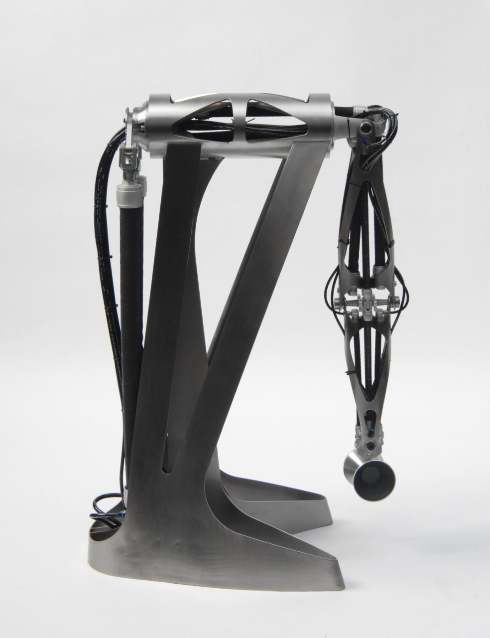 Der AirArm steht, um eine garantierte Stabilität zu erzielen, auf einem Doppelfuß aus Edelstahl und Kunststoff. Die Gestaltung des mit Hydraulik angetriebenen Roboterarms wurde von natürlichen Vorbildern inspiriert, wie: Hummerscheren, Heuschreckenbeinen oder menschlichen Armen. Das Forschungsprojekt der drei Hochschulen zeigt einen neuartigen hydraulischen und bionischen Roboter, der durch seine künstlichen Muskeln und die daraus resultierende menschenähnliche Bewegung in der Lage ist, Tropfen zu fangen oder Dartpfeile zu werden.