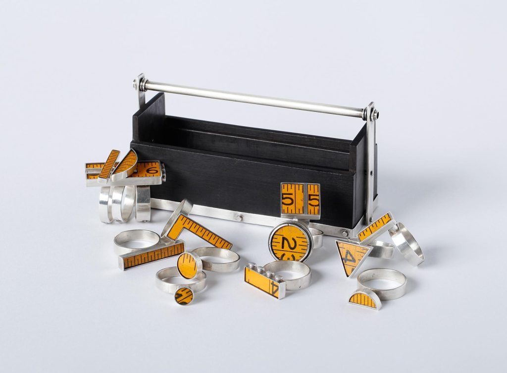 | Material / Technik | Box: Ebenholz; Silber; Ringe: Silber; Teile eines Meterstabs |