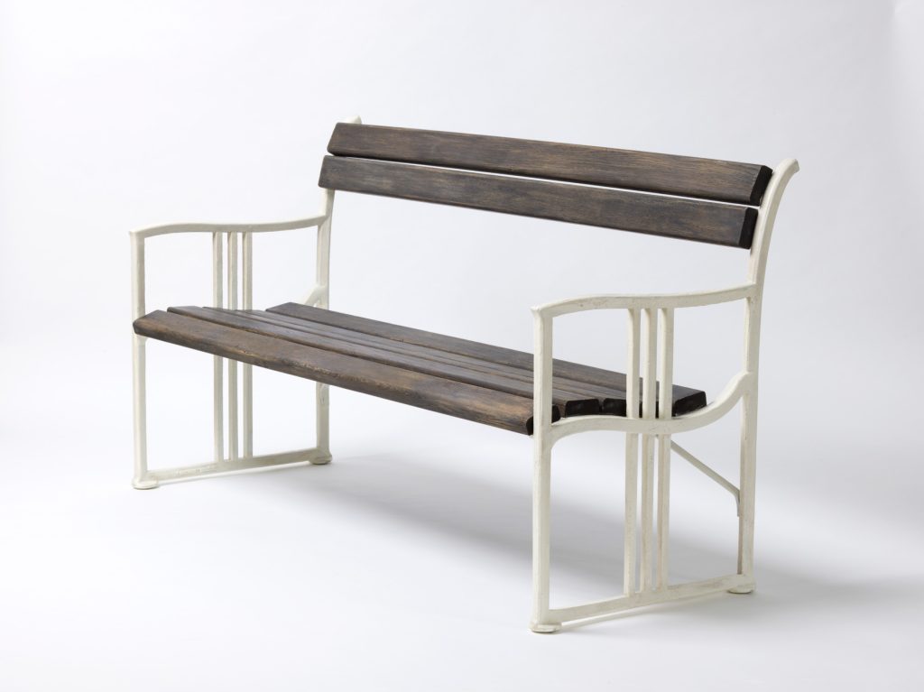Josef Hoffmann (1870–1956) erfuhr seine Ausbildung zum Architekten unter anderen bei Otto Wagner (1841–1918) an der Akademie der Bildenden Künste in Wien. Wagner hatte sich in der österreichischen Hauptstadt als Vertreter eines funktionalen Stils hervorgetan und vertrat eine vom Rationalismus geprägte Architekturauffassung. Hoffmann übernahm diesen Ansatz von ihm und baute ihn weiter aus, wie sich an seiner Gartenbank ablesen lässt. Im Rahmen eines umfassenden Auftrags für die Wiener Stadtbahn hatte Josef Wagner 1898 bereits eine formal reduzierte Bank entworfen, bei der er jedoch nicht auf eine zurückhaltende Ornamentierung verzichtete. Hoffmann entschied sich dagegen bei dem Entwurf seiner Gartenbank, die in mehreren Varianten vom selben Hersteller wie dem der Wagnerschen Stadtbahnbank August Kitschelt’s Erben produziert wurde, gänzlich gegen eine Dekoration des Gegenstandes. Stattdessen orientierte er sich an einer geometrischen Vorlage: So entwickelte er die Form der Bank aus einem Kubus und auch ihre Seitenwangen gestaltete er allein durch die Anordnung vertikaler Stäbe. Er setzte also Konstruktion und Gestalt gleich. Für wen Hoffmann seinen Entwurf ausführte, ist unbekannt. Er zeigt jedoch exemplarisch, dass der Wiener Architekt als bedeutender Wegbereiter für die Formgebung des 20. Jahrhunderts und deren Leitsatz „Form follows function“ zu bewerten ist.