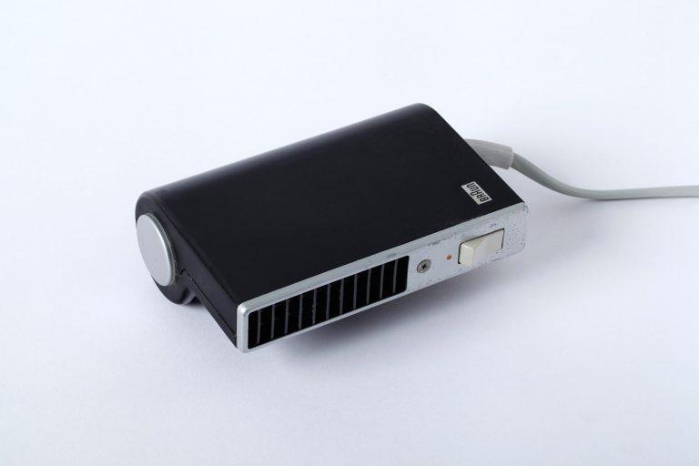Der erste von Braun produzierte Haartrockner weist eine Rundung auf, die das technische Innenleben versinnbildlicht und zugleich einen handlichen Griff darstellt. Dabei sind Ansaug- und Abstrahlgitter formal einheitlich gestaltet.