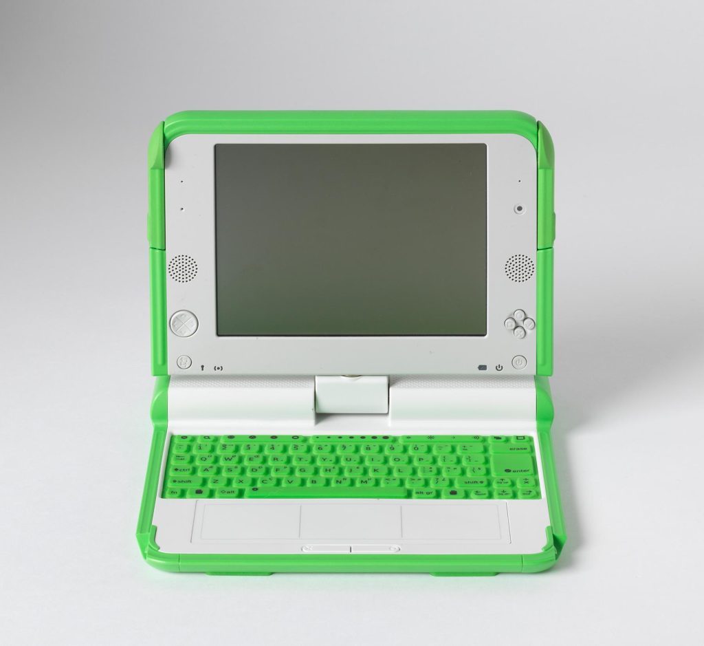 Ziel des gemeinnützigen Projekts „One Laptop per Child“ ist es, allen Kindern weltweit mit Hilfe eines speziell entwickelten mobilen Klappcomputers den Zugang zu Bildung zu erleichtern. Mit der Gestaltung des sogenannten „100-Dollar-Laptops“ wurde der Schweizer Yves Béhar (*1967) beauftragt, der einen Entwurf vorlegte, der auf die Bedürfnisse von Kindern in entwicklungsschwachen Ländern ausgelegt ist. Auffällig ist das farbenfrohe, kindgerechte Design mit abgerundeten Kanten, einem einfachen Tragegriff sowie zwei „Hasenohren“, die zugleich als WLAN-Antenne und Abdeckung eines USB-Anschlusses fungieren, aber auch zur Verriegelung der Klappe dienen. Dank der Antenne können sich Kinder untereinander vernetzen. Ein duales Display erlaubt eine Nutzung im Dunkeln sowie bei Tageslicht. Der Computer ist robust und wasserfest, seine Tastatur wird durch eine Gummimembran geschützt. Darüber hinaus sind sämtliche Komponenten leicht austauschbar, sodass der Laptop selbst von Kindern in wenigen Schritten repariert werden kann. Eine Handkurbel ermöglicht es, das sehr energieeffiziente Gerät – 10 % des üblichen Stromverbrauchs eines Standardrechners – wenn nötig sogar manuell aufzuladen. Das Projekt wurde 2005 vom MIT-Professor Nicholas Negroponte auf dem Weltwirtschaftsgipfel in Davos vorgestellt. Ein Prototyp des Modells der ersten Generation XO-1 wurde noch im selben Jahr präsentiert.