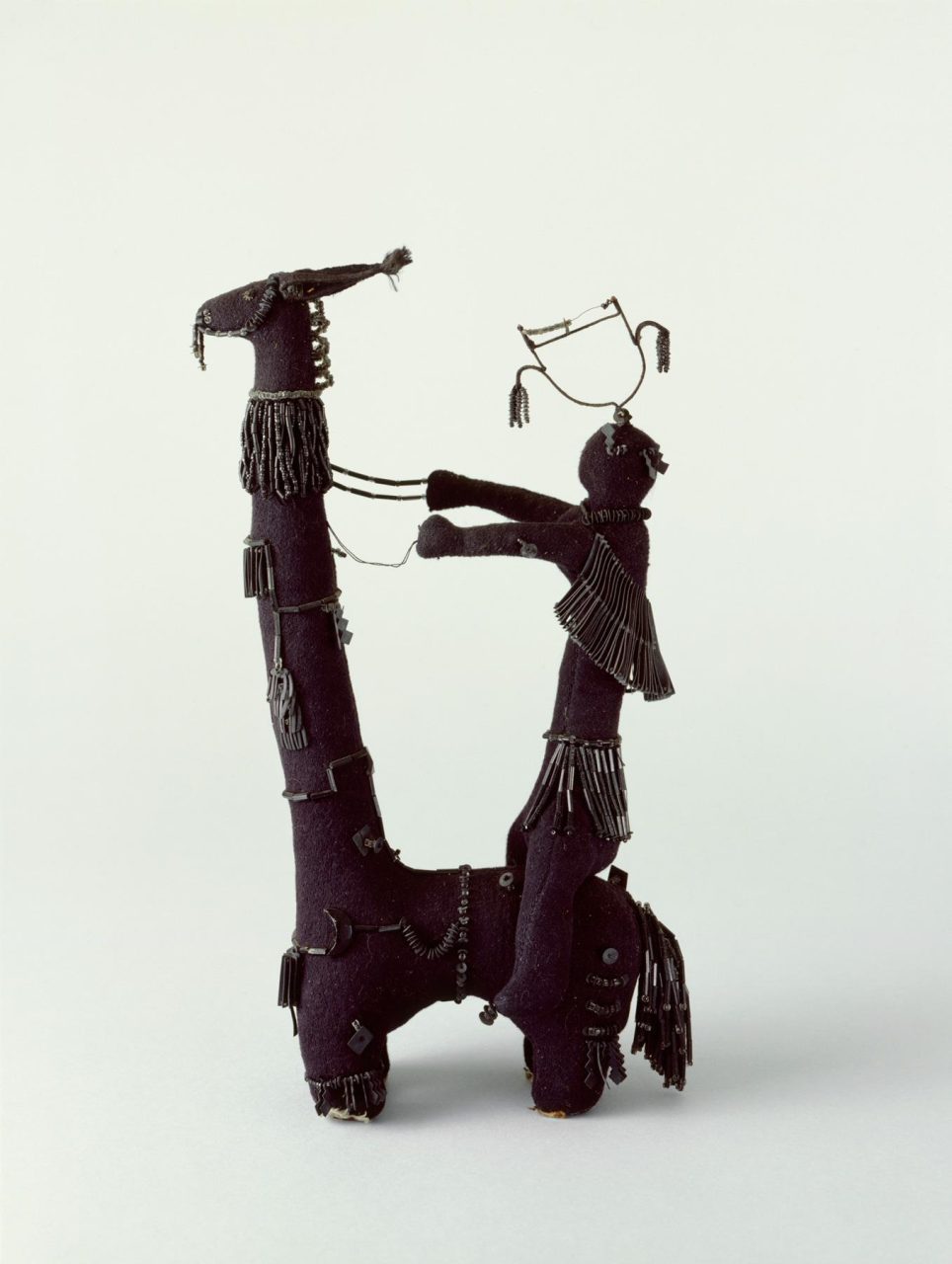 | Material / Technik | Stoff (Velours), schwarz, ausgestopft, bestickt; Perlen, schwarz; Strass |