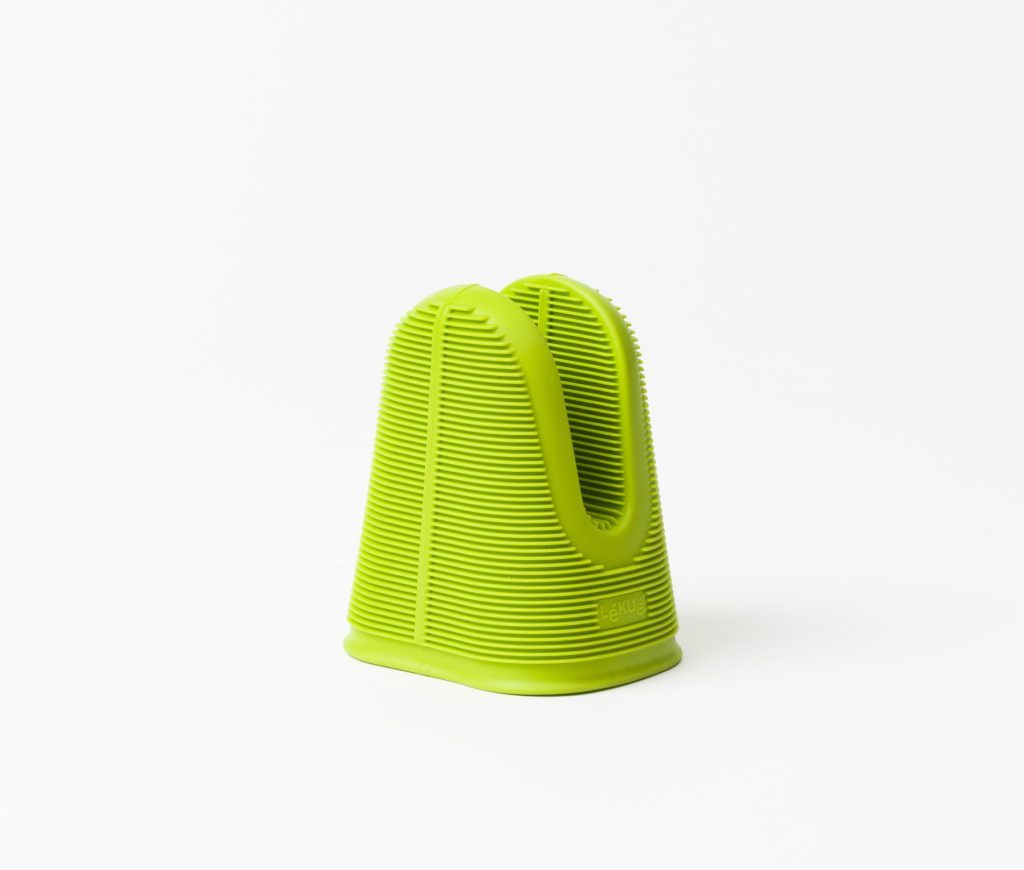 Den Handschuh hat der Designer Xavier Costa 2010/11 für Lékué entworfen. Die spanische Firma legt bei ihren Produkten großen Wert auf ein funktionales Design. Obwohl Silikone schon zu Beginn des 20. Jahrhunderts in England entwickelt wurden, hat die Nutzung des Werkstoffs für Küchenutensilien erst im 21. Jahrhundert eklatant zugenommen – Eiswürfelformen, Backformen, Küchenschaber und vieles mehr bestehen heute häufig aus Silikon. Das liegt daran, dass der chemische Stoff als gesundheitlich unbedenklich gilt, elastisch ist und fast nichts an seiner Oberfläche haften bleibt. Silikon ist zwar schwer abbaubar, verspricht aber eine lange Nutzung.