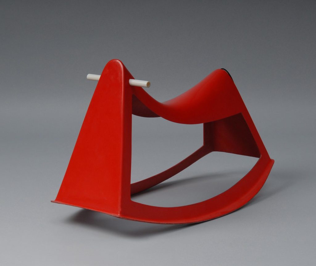 | Material / Technik | Kunststoff (Polyester, glasfaserverstärkt), rot, handlaminiert; Kunststoff, weiß, schwarz, transparent-grün |